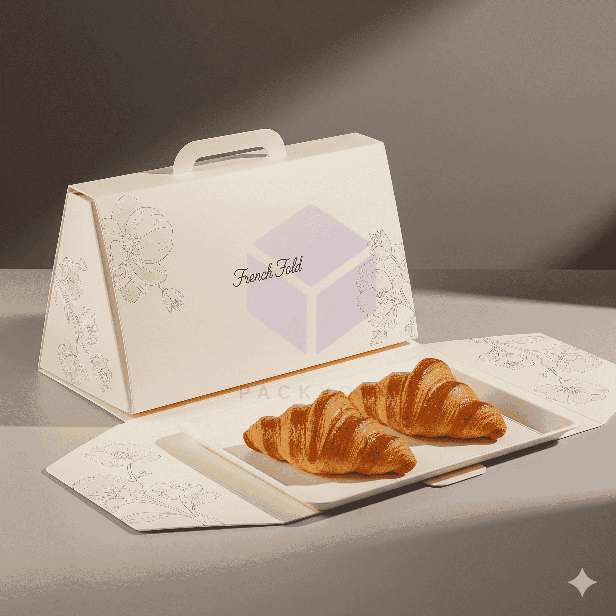 - Custom croissant boxes sized for single or multiple pastries.
